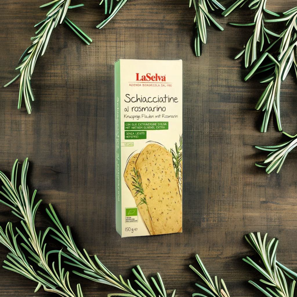 Ingredients: type 0 soft WHEAT flour* 85%, sunflower oil*, extra virgin olive oil*, sea salt, rosemary* 1.3%, BARLEY malt flour*. May contain SOYA and MUSTARD. *from organic farming.