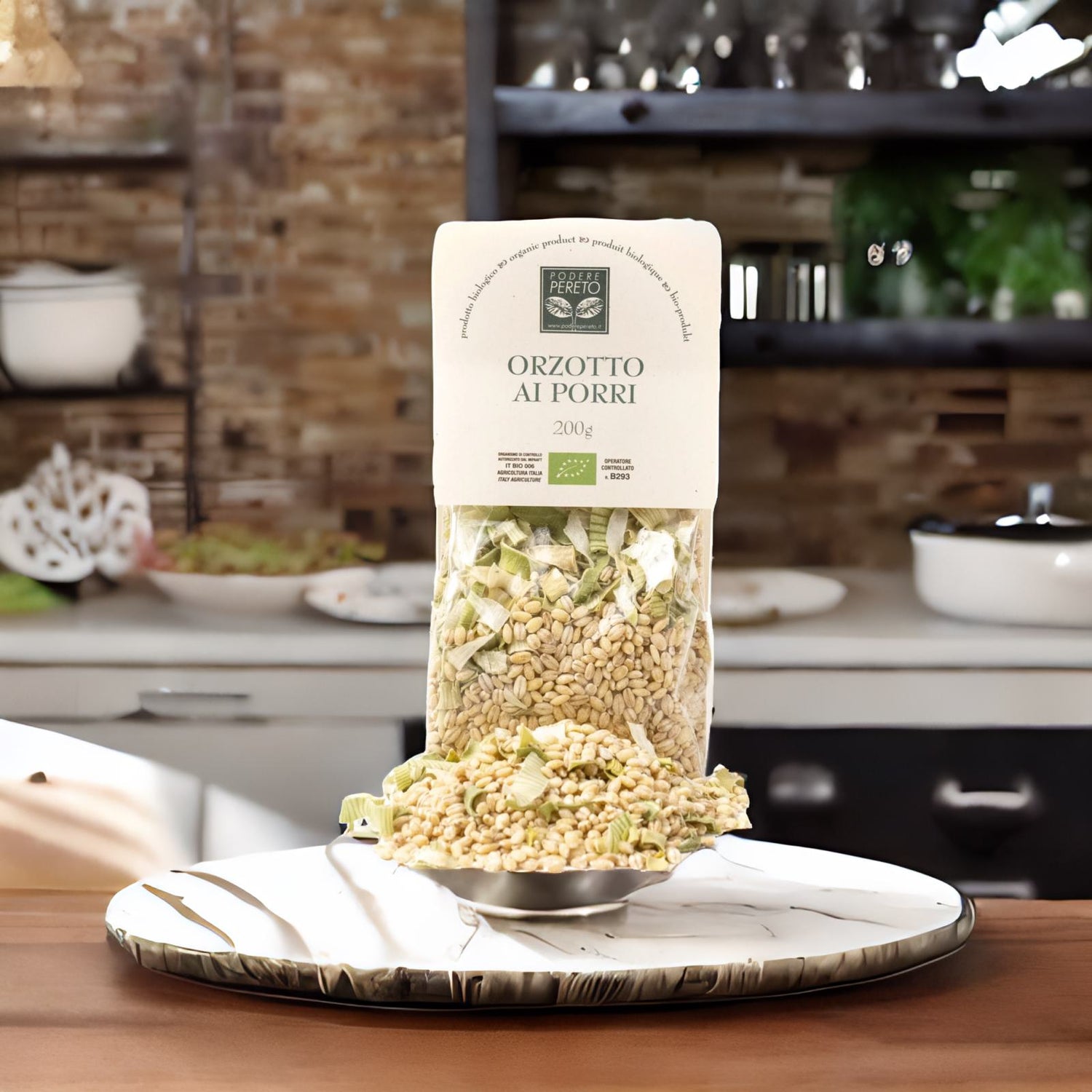 Pearl barley* - Leeks* 5% - Parsley*. * from organic farming Allergens: Contains gluten. May contain traces of mustard.
