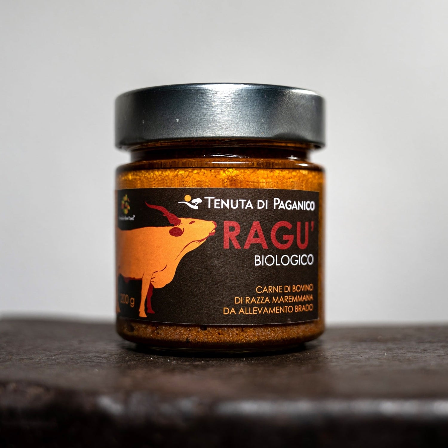 Organic ragù made with beef from Maremma cattle raised in the wild
