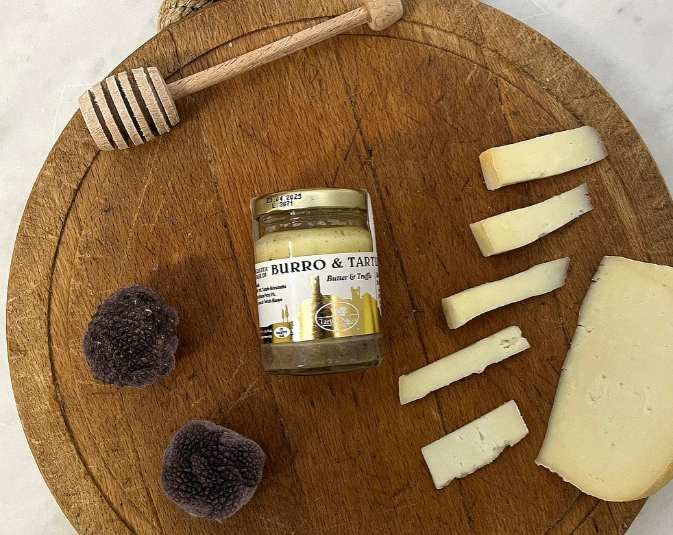 The aroma is delicate and The aroma is delicate and unobtrusive, the full flavour of the cheese, delicate and balanced, born from the milk of the Maremma sheep's milk, is reinforced by the special notes of the truffle. The structure of the cheese appears soft but compact, soluble, with truffle veins, tender and soluble.