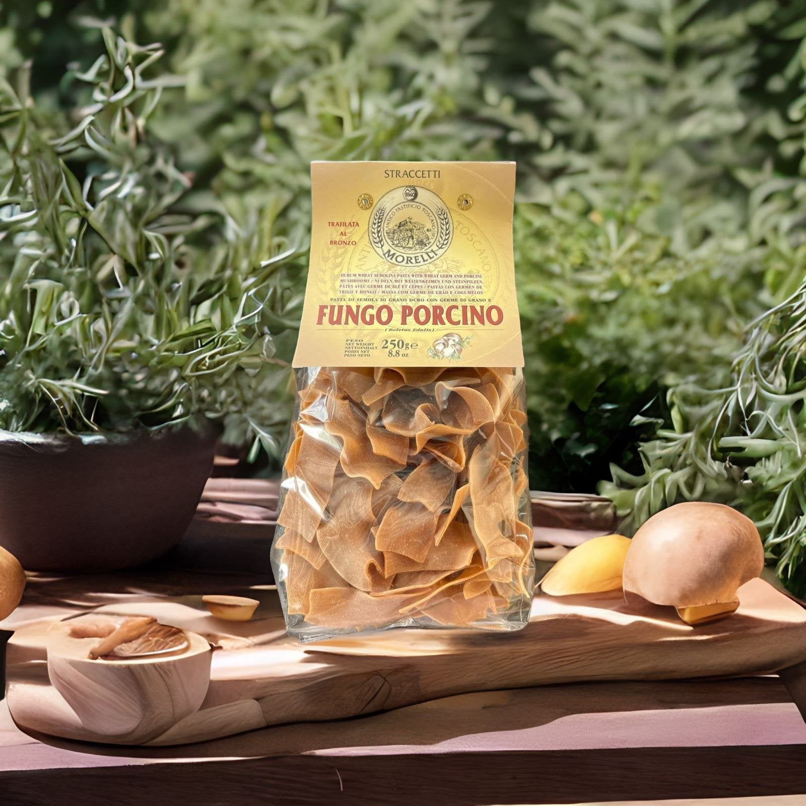 Durum wheat semolina pasta with wheat germ and porcini mushrooms